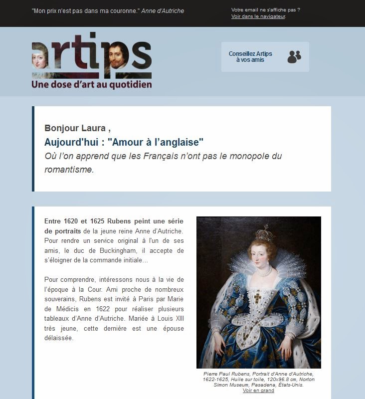 Que tal uma dose de arte no quotidiano ? É a proposta muito bacana deste projeto: levar a arte para o quotidiano das pessoas. O princípio é simples: uma newsletter gratuita, de segunda a quinta, que conta uma anedota divertida e curiosa sobre uma obra de arte.